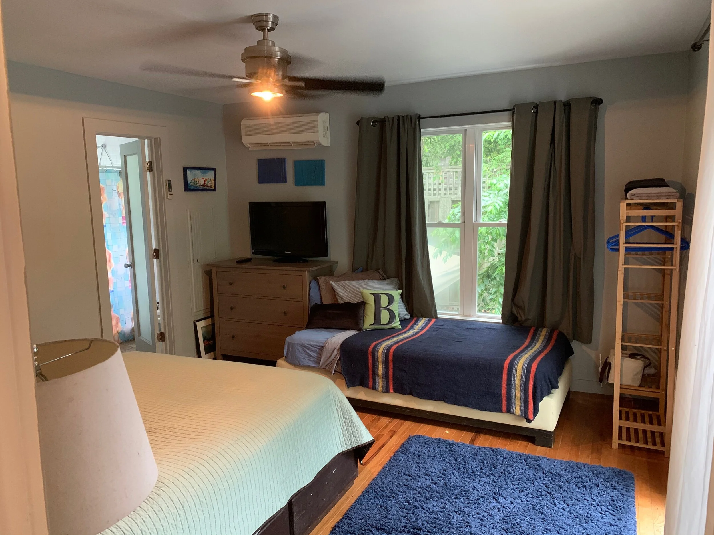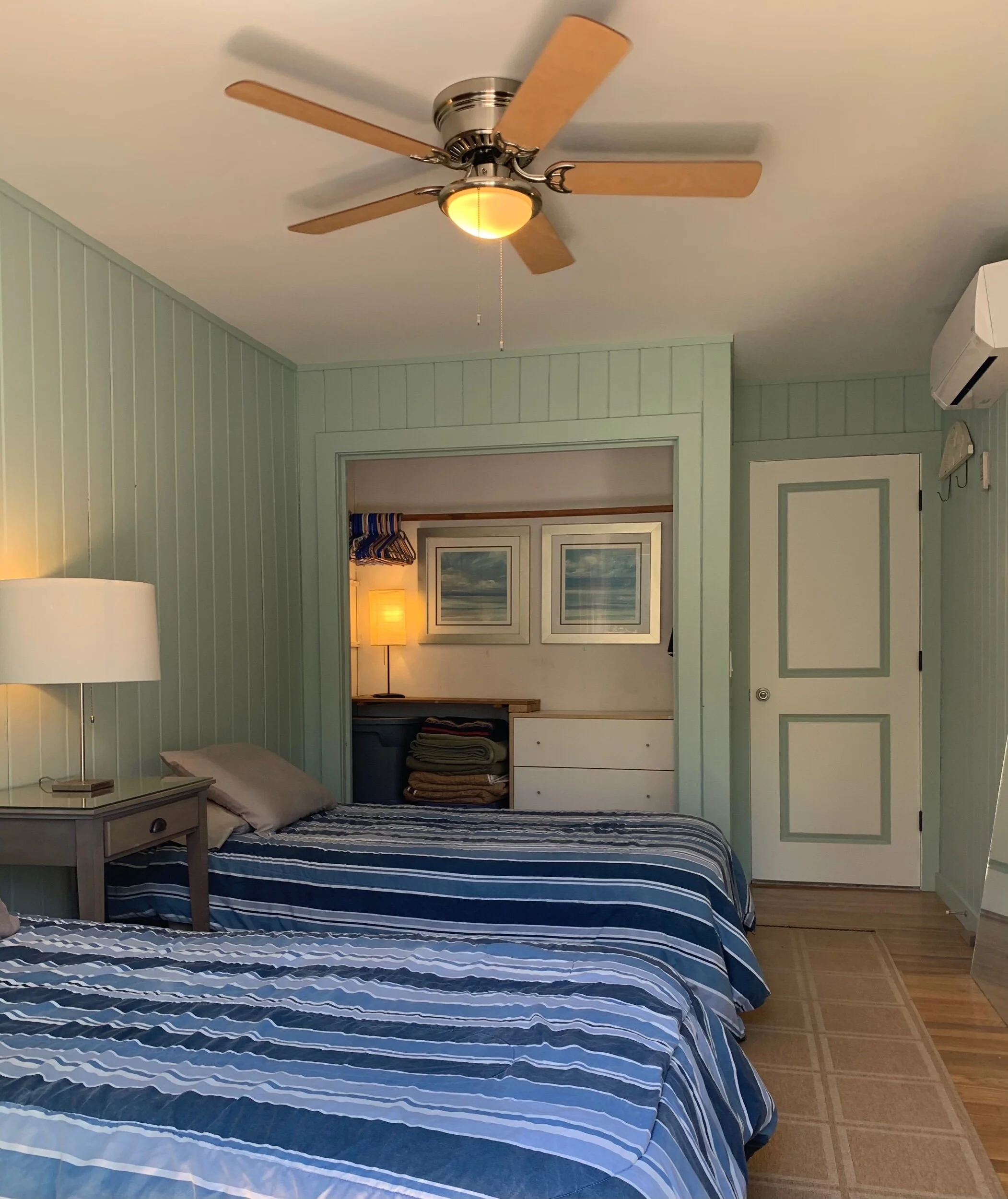 Direct access onto the deck, ceiling fan, personal AC & heat. New for 2022: The two ensuite rooms will each have a king bed and a twin daybed, and all other rooms have two twin beds that can also be made up as a king. The two ensuite rooms can sleep up to three, the other two rooms sleep two.